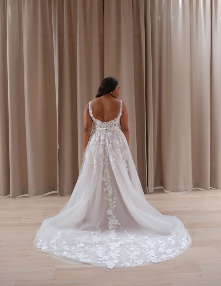 All of our designers offer varying degrees of tweaks to their designs and many come in more than one colour. So, if you fall in love with a wedding dress but want to make it more “you” – whether that’s by removing a slit in the skirt, adding extra sparkle, altering a neckline, or changing the skirt/sleeve length – it might well be possible! We’re always happy to work with you and our designers to see how we can adjust dresses to make them perfect.